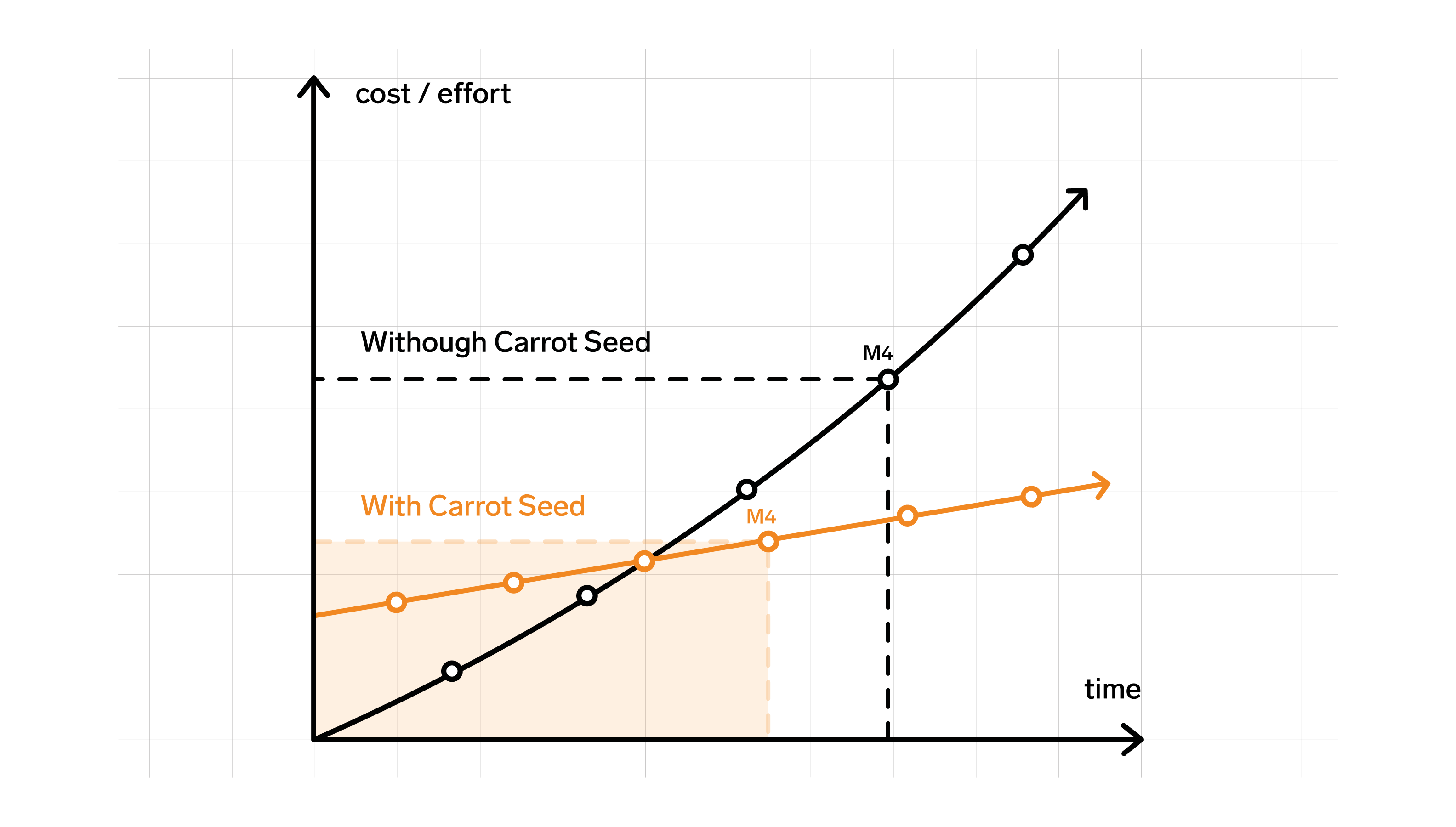 A quick start to a project also means earlier results. Before Carrot Seed, it took us weeks to get the first testable results. Now we can deliver it with the first sprint.