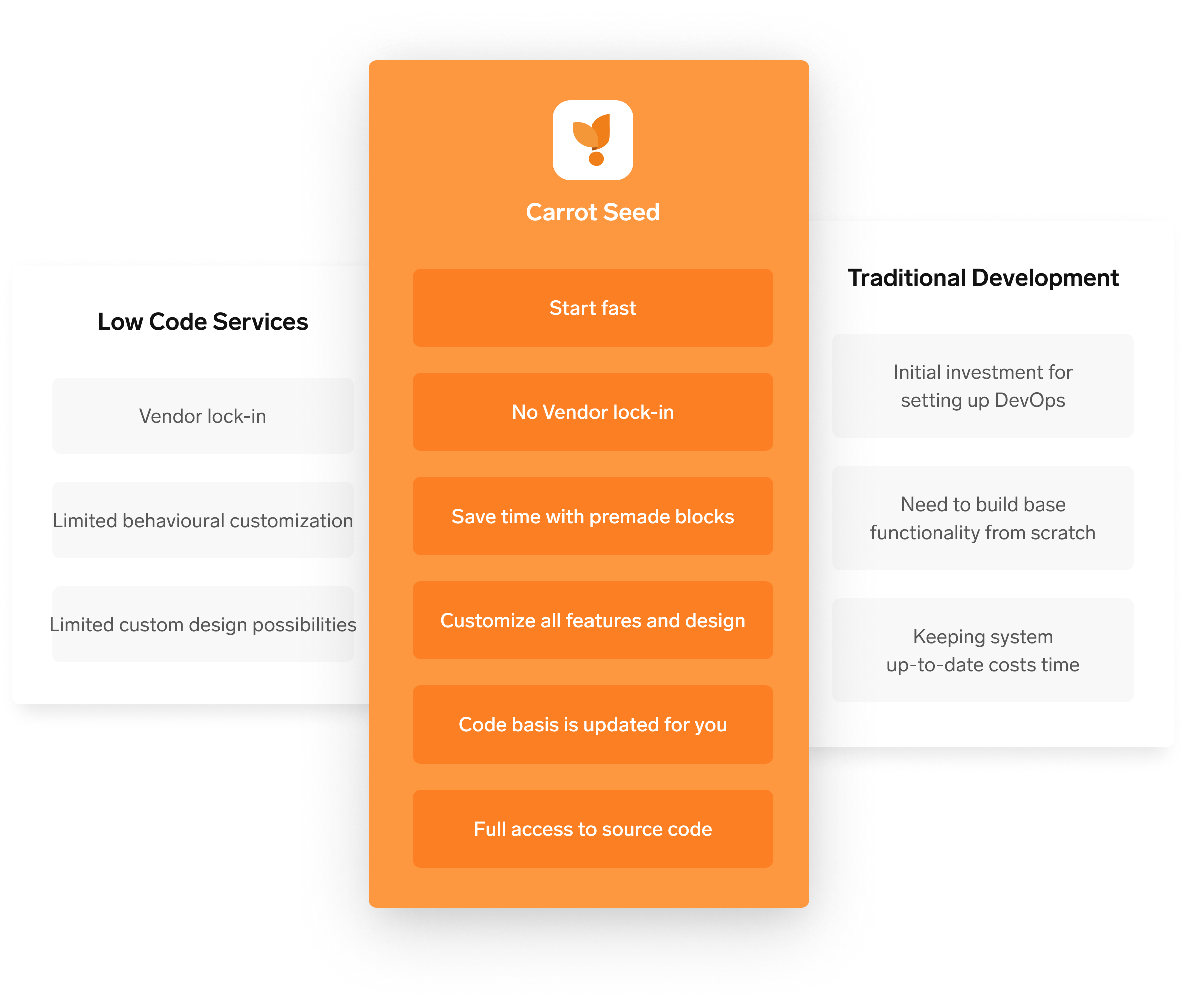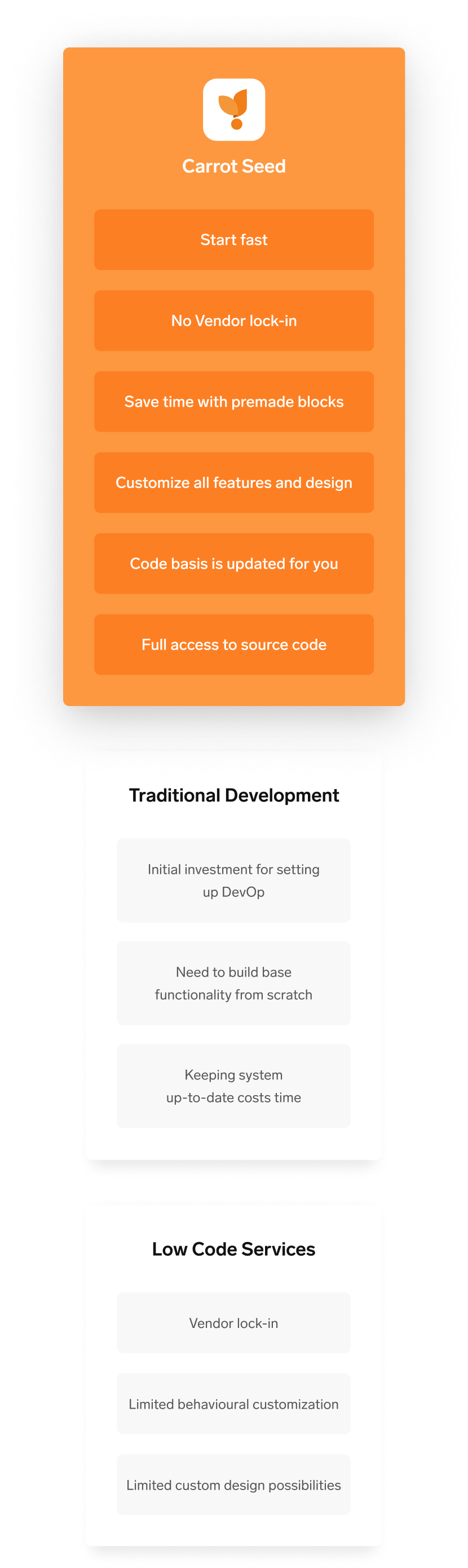 That is very unlikely. We use Carrot Seed internally as well. It’s the foundation of all our products. If the case should happen anyway you’re still safe! With Carrot Seed you’re always in charge of the source code. You can change everything the way you want. You’re not gonna be locked in.